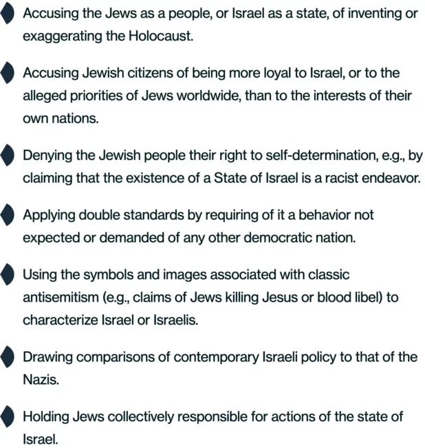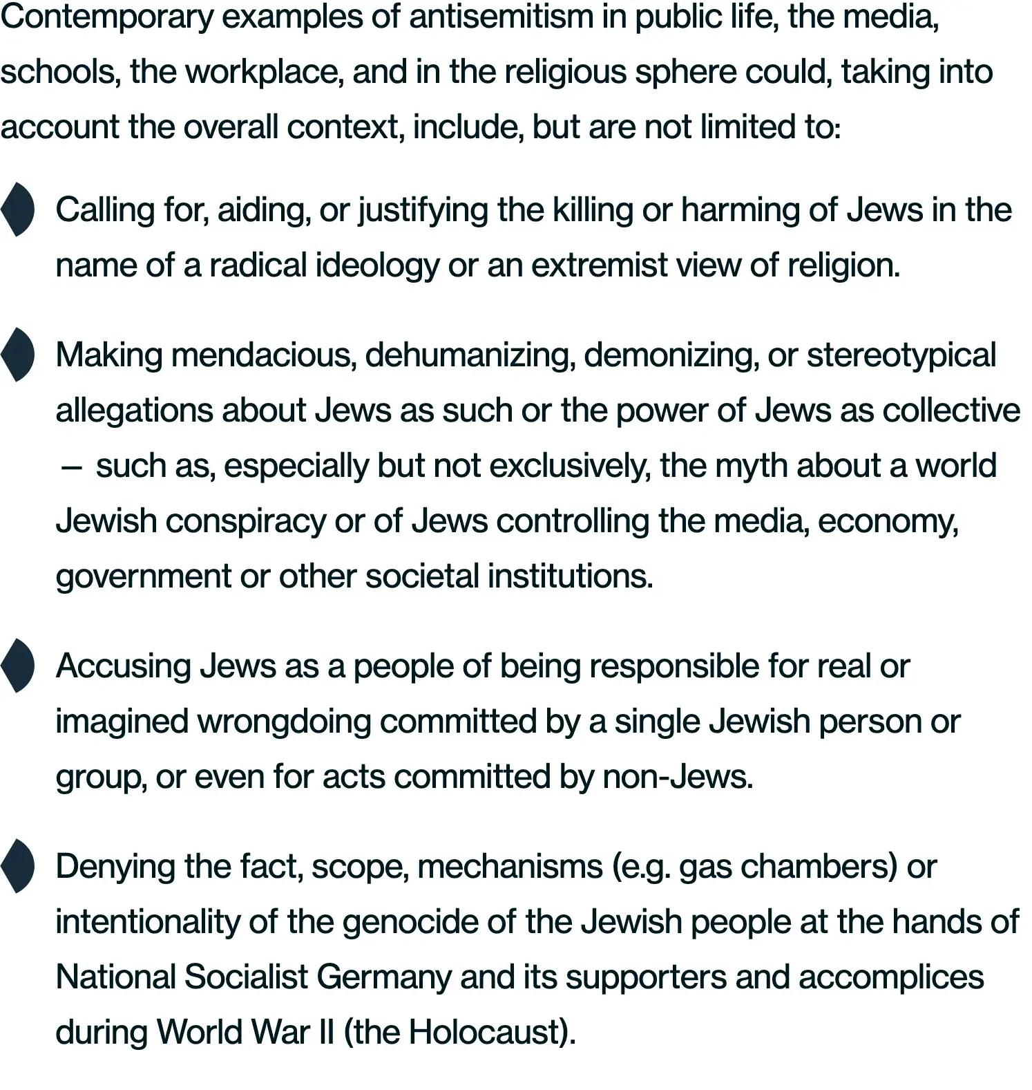 The IHRA definition goes through and points to every single thing Jews dislike and makes it illegal to say it.