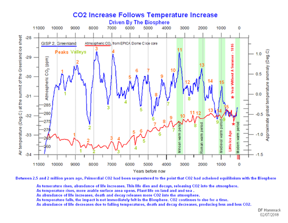 Try this: next time someone spits this global warming nonsense at you, ask them to explain to you how carbon dioxide causes warmer weather. If you’re on the internet and they try to post a link, tell them, “no, you explain it to me in your own words.” Ninety-nine out of 100 won’t be able to give you any explanation at all. If they do give you the standard line about the composition of the atmosphere allowing in more radiation from the sun and then trapping the heat, ask them why the ice core samples show carbon trailing warming and not the reverse.