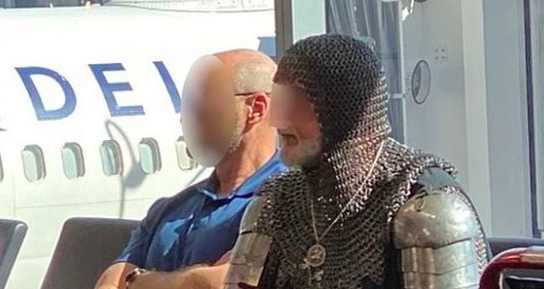 A man was spotted wearing a full suit of armor, including chainmail and helmet, at Atlanta airport, sparking theories as to how he got through security.