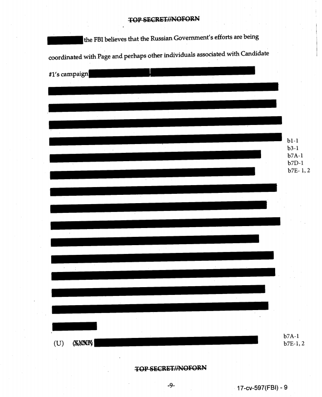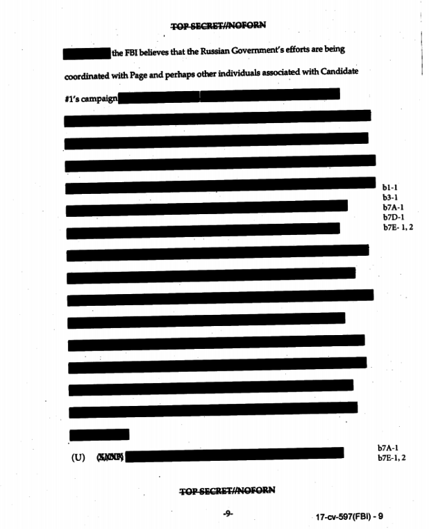 The more than 400-page document released Saturday, which includes the initial October 2016 FISA warrant on Page and three subsequent renewals, is heavily redacted.