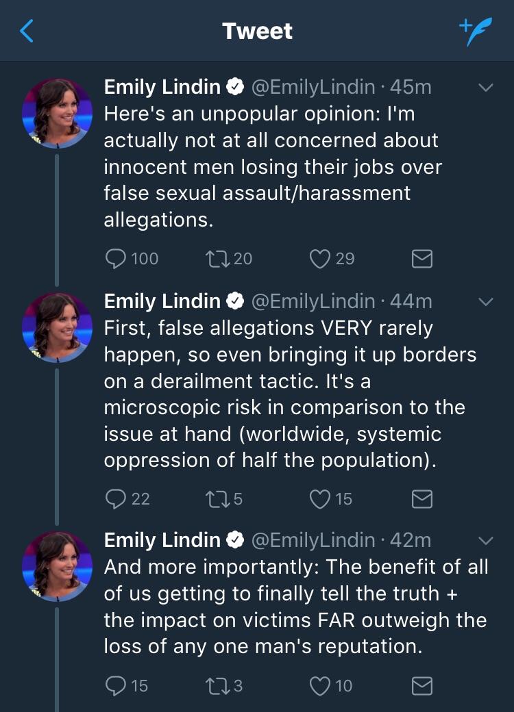 It doesn’t even matter if he’s innocent. He still deserves to suffer. Due process doesn’t apply to men accused of sexual harassment.