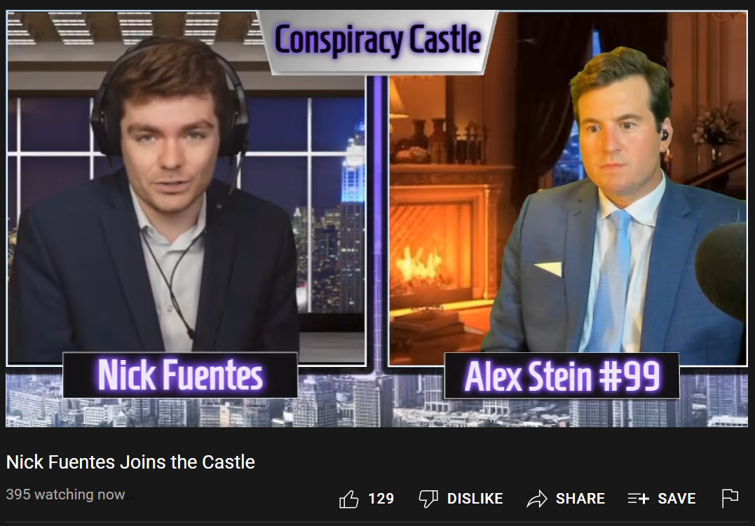 Future American Dictator Nick Fuentes appeared on Alex “Prime Stein Time 99” Stein this week in an excellent episode.