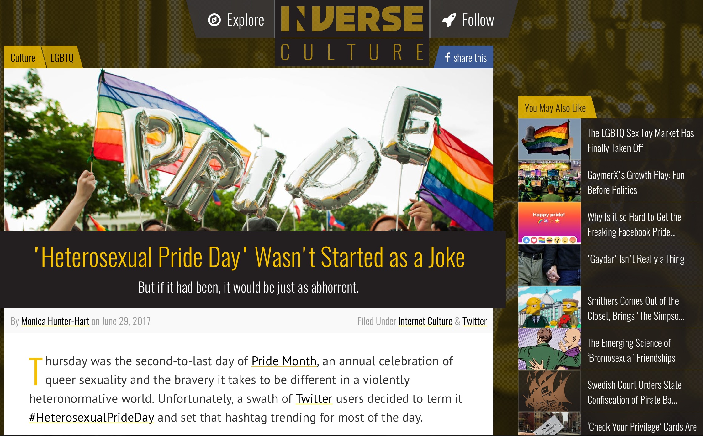 #HeterosexualPrideDay was trending on Twitter last night.