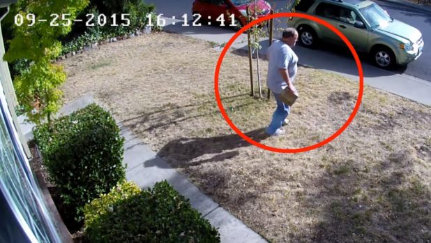 The man is shown carrying the girl’s backpack and it appears that they were walking home from a nearby elementary school. Then the man could be heard instructing the little girl to “grab everything” from the porch- about five packages in all, including a large box.