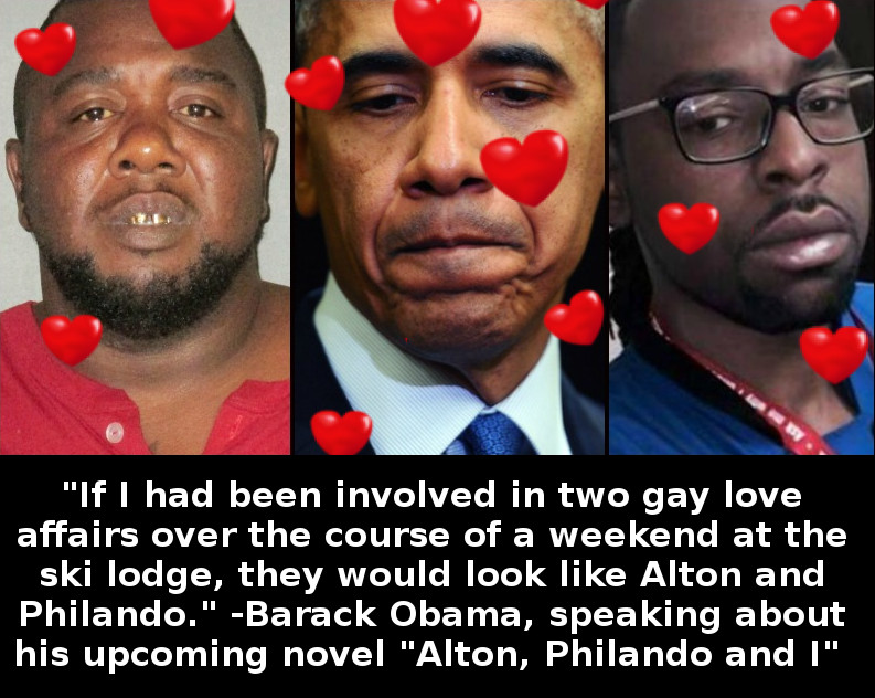 “If I had been involved in two gay love affairs over the course of a weekend at the ski lodge, they would look like Alton and Philando.” -Barack Obama, speaking about his upcoming novel “Alton, Philando and I.” (Twitter-ready version here).