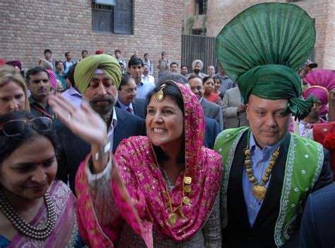 She pretends that she is both Sikh and a convert to Christianity. Sikhism is possibly less offensive than Hinduism, which is why she claims that religion, even when she dresses in traditional Hindu dress.