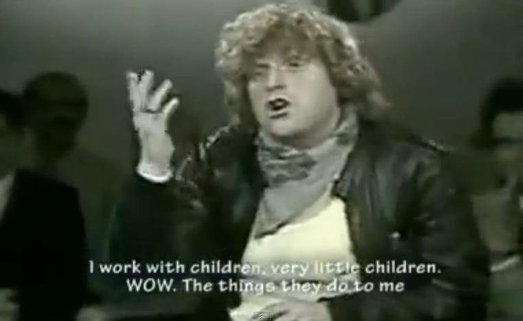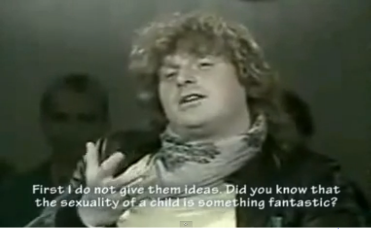 He smugly boasted about his pedophilia with the Kinderladen children during an appearance on a French TV show in the early 80s: