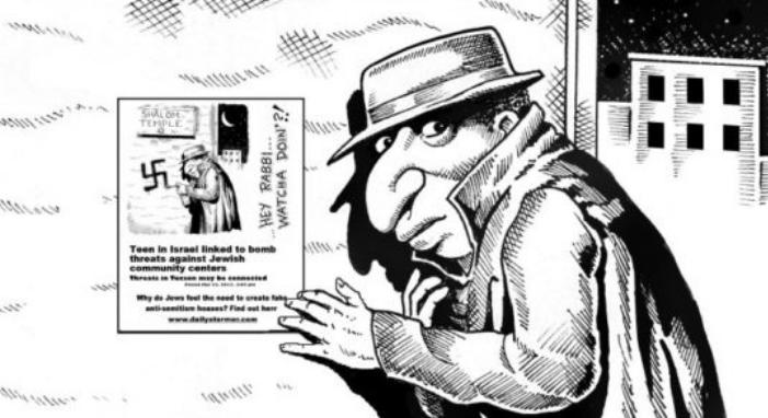 Someone has been going around spreading a flier informing the public that the “bomb threats” local Jews have been reported are a hoax coordinated straight out of Israel. They have a link leading back to the Daily Stormer, the sole media publication that has accurately covered this false flag from day one.