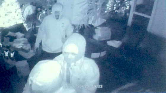 The three suspects were caught on home surveillance outside the residence, before they kicked their way inside.