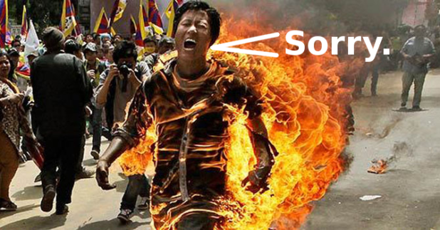 If only he burned himself for the rainforest, or the whales, or as a protest against Valve refusing to make Half-Life 3, then I could have had a bit of sympathy.