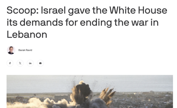 Obviously, the framing is that the Israelis are giving demands to the White House to give to Lebanon during the upcoming negotiations, but the Israelis are telling the US the terms of the negotiations when the US should be the one setting the terms. The demands are being issued against the United States.