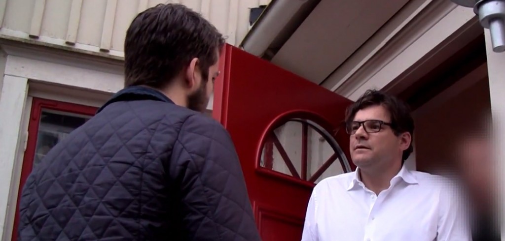 As a reaction to the despicable methods used by Swedish journalists the editor-in-chief of Aftonbladet, Jan Helin, was visited by a group of nationalist activists from Nordisk Ungdom calling themselves ”The Journalist Hunters” (Journalistjägarna). They rang the doorbell and asked Mrs. Helin who happened to open the door if Mr.Helin was at home and could answer some questions. ”But we live here!” was Mrs. Helin’s pretty shocked answer (oh the irony!). Right after that comes Mr. Helin with his mobile drawn in a theatrical fashion, photographing the nationalists giving him a taste of his own medicine. Mr. Helin did, of course, not answer the questions thrown at him asking how he likes to be confronted at his own house in a manner used by his employees.