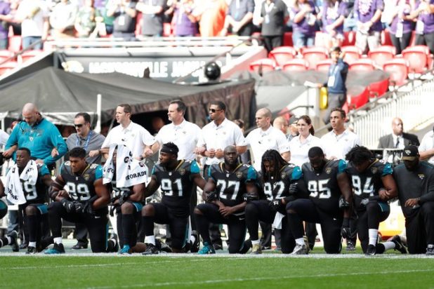 The first Negro Felon League game to kick off this weekend was the Jacksonville Jaguars versus the Baltimore Ravens held in London. As expected, huge numbers of these disrespectful apes took a knee when the national anthem was played. In a foreign country no less!