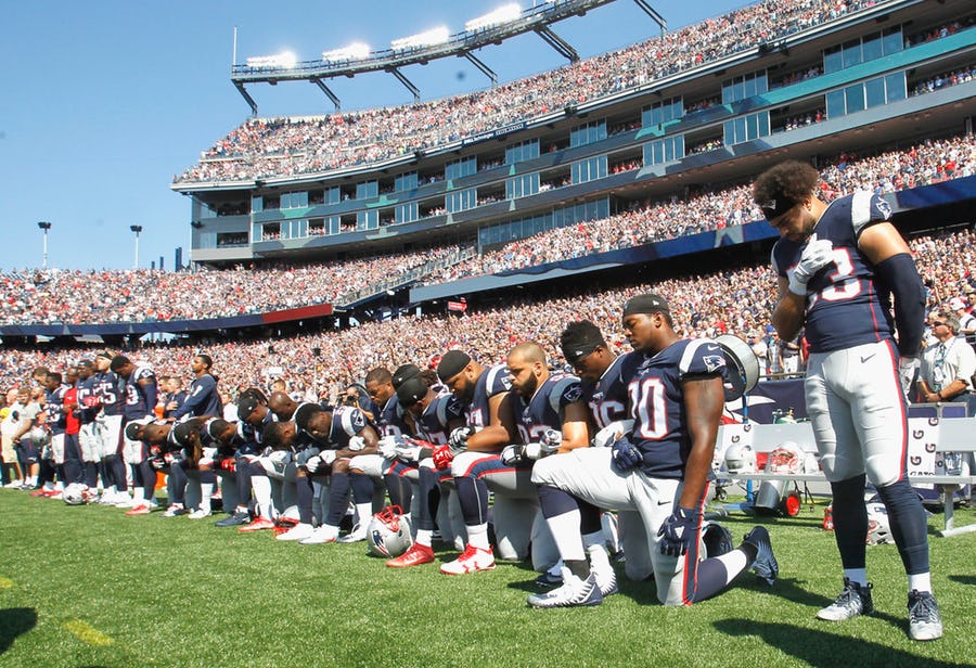 A large portion of the crowd in Gillette stadium booed the New England Patriots when several of their non-White players chose to kneel during the national anthem.