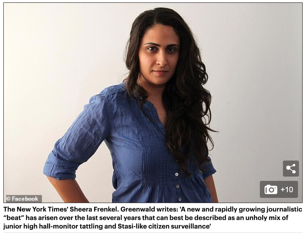 Notably, few of these reporters are Jewish. Especially if you compare it to the average percentage of Jews in the journalism industry in total. Of the eight names Glenn featured, there on the wall of shame, the only one that is confirmed as Jewish is Frenkel, who is clearly some kind of brown person (I don’t think she’s Sephardic, she looks like a Jewlatto). She worked at BuzzFeed, and got bumped up to the New York Times to do this Stasi witch-hunt.