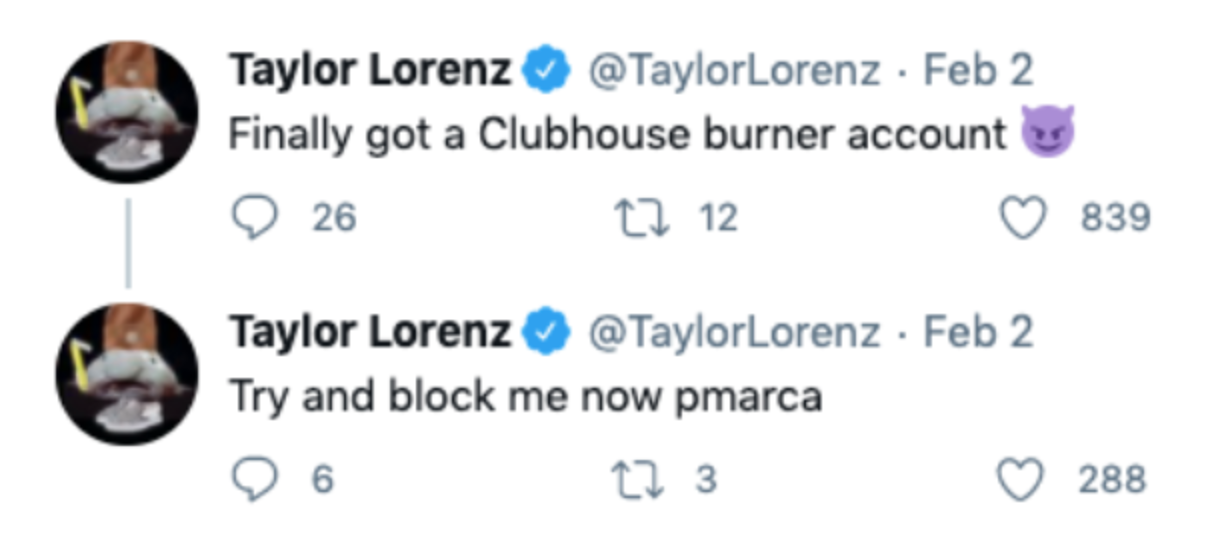 As a framing device for the larger issue of journalism having been transformed into a tattletale industrial complex, he tells the mind-numbing tale of how this Lorenz bitch snuck into a private chat on Clubhouse, after she’d already been blocked, and secretly recorded them, before falsely accusing Silicon Valley entrepreneur Marc Andreessen of using “the r-word” (that’s “retard,” by the way – you’re not allowed to say that anymore). Glenn explains that the accusation was false – it was someone else who said it, and they were quoting a third party from reddit – and the bitch was called out on it. Instead of apologizing and retracting, she said “thanks for clarifying” and then locked her account when people criticized her, pretending that she is herself the victim.