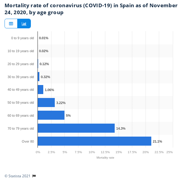 But even if you go with the official numbers, it is clear that virtually nobody under 50 is really at risk of this alleged virus.