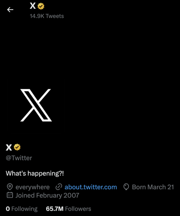 The account logo was changed from the familiar blue bird avatar to a white letter X against a black background.