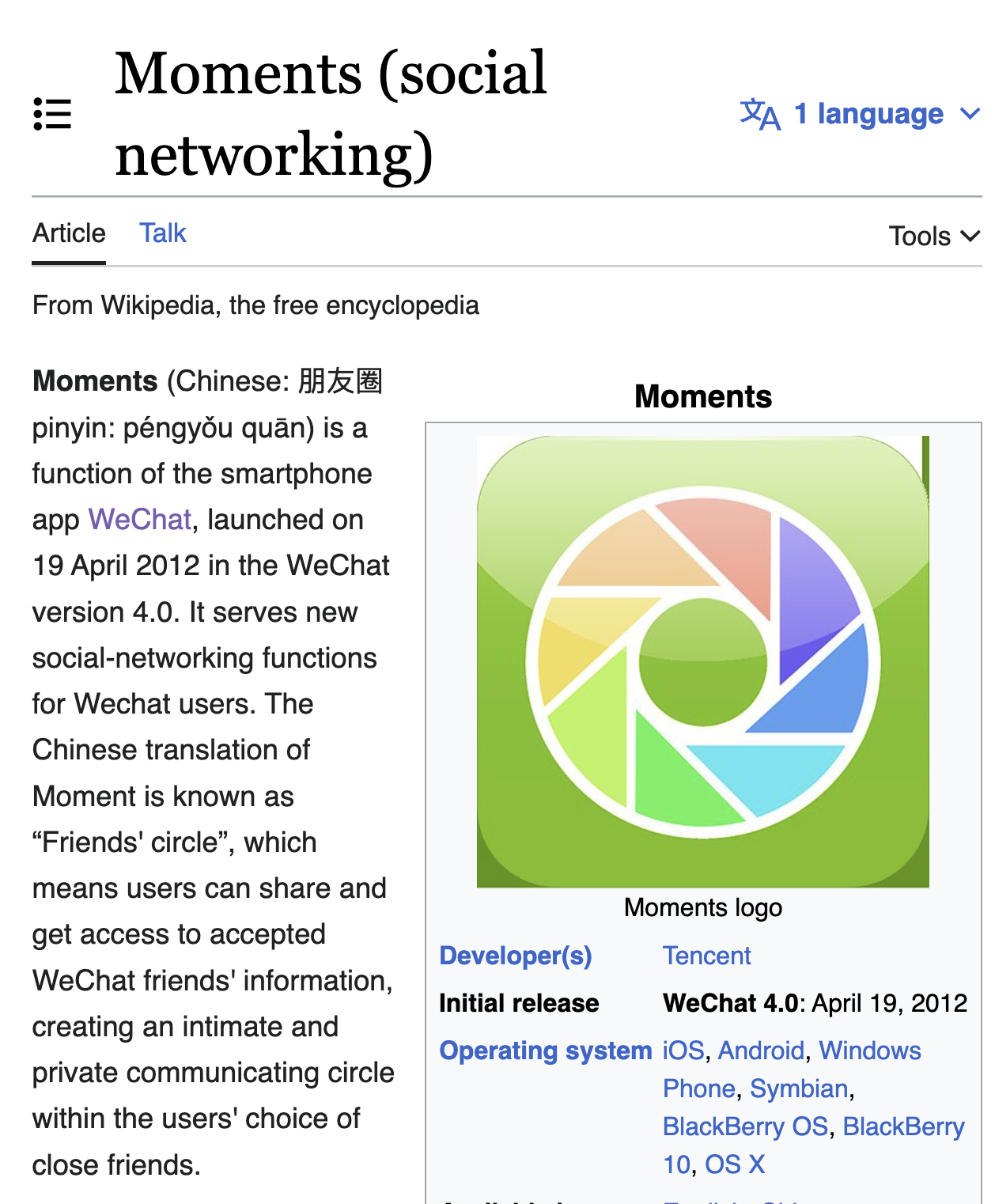 Just to be clear, “WeChat” is “WeChat” – the everything app – but different apps within WeChat have their own names. For example, the Twitter equivalent is called “Moments.” This is referred to as “a function of WeChat.”