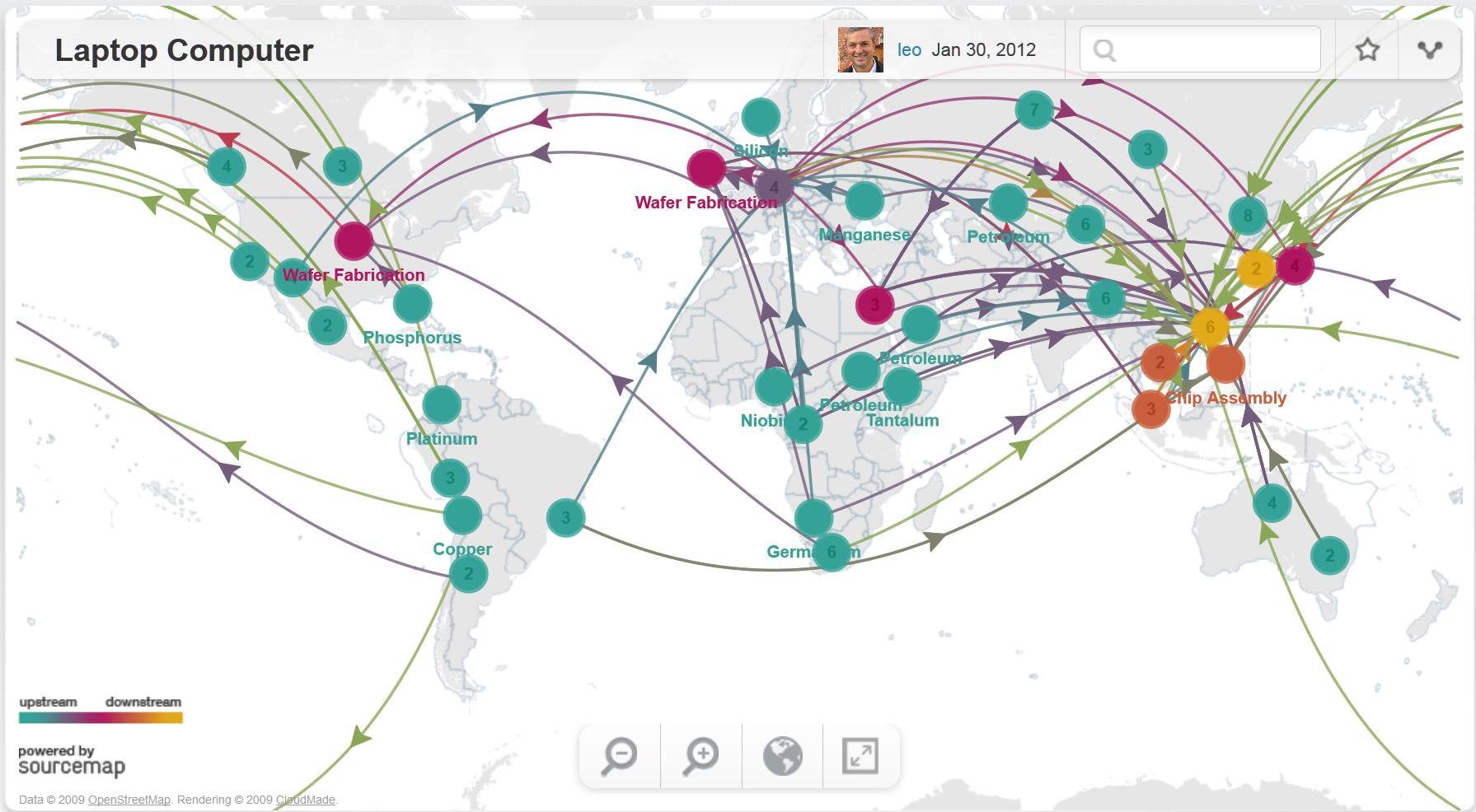 Just as an example, here’s a supply lines map for the raw materials and factory construction that goes into producing a laptop: