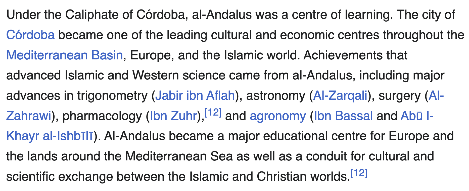 Here’s the white pill: according to Wikipedia, Islamic-occupied Spain was a center of learning and everything was really great: