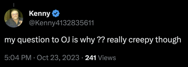 A man calling another man “creepy” is beyond the pale. A man can insult another man with many words – asshole, faggot, coward, bitch, pussy, dickhead, nerd, and many others – but if a man calls another man “creepy,” he is a traitor. “Kenny” is a boomer who sets his real photograph as his Twitter avatar: