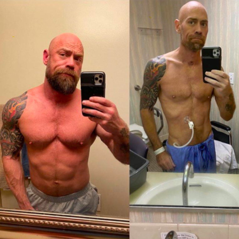 But after dropping 50 pounds amid the ravages of COVID-19, Schultz decided to share two images to his 30,000 Instagram followers — one taken about a month before he fell ill, the other snapped at a Boston hospital.