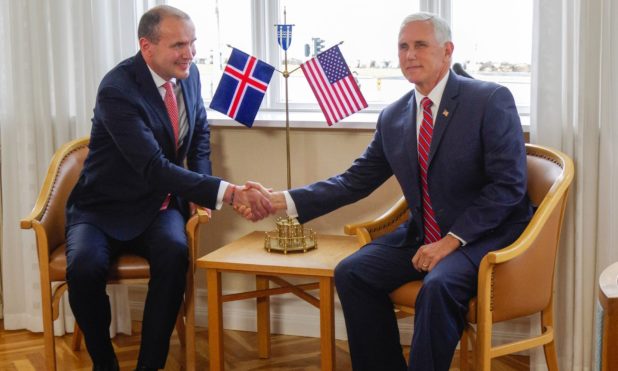 As Mike Pence pulled up to Höfði House in Reykjavík, he was met not only by Iceland’s president, Guðni Jóhannesson, but also a row of rainbow flags.