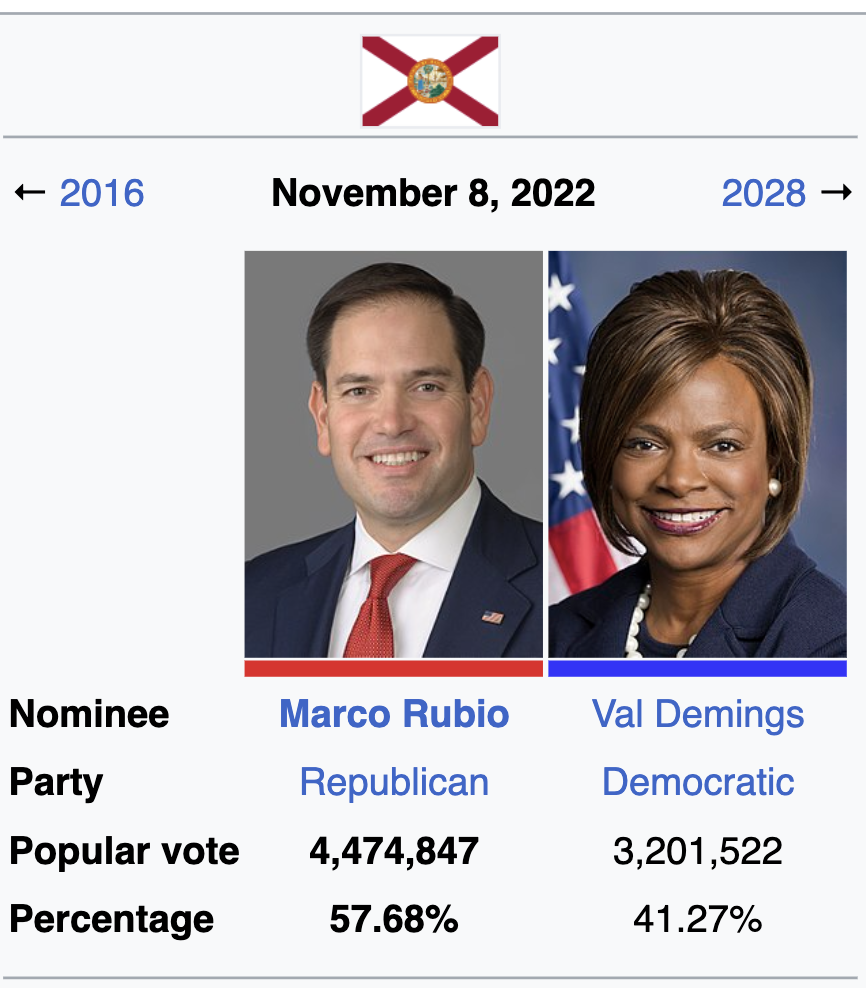Say what you will about Ron DeSantis, but he actually secured Florida’s vote. In Florida, Macro Rubio, a heavily despised Senator who is gay and repulsive, won by 16 points.