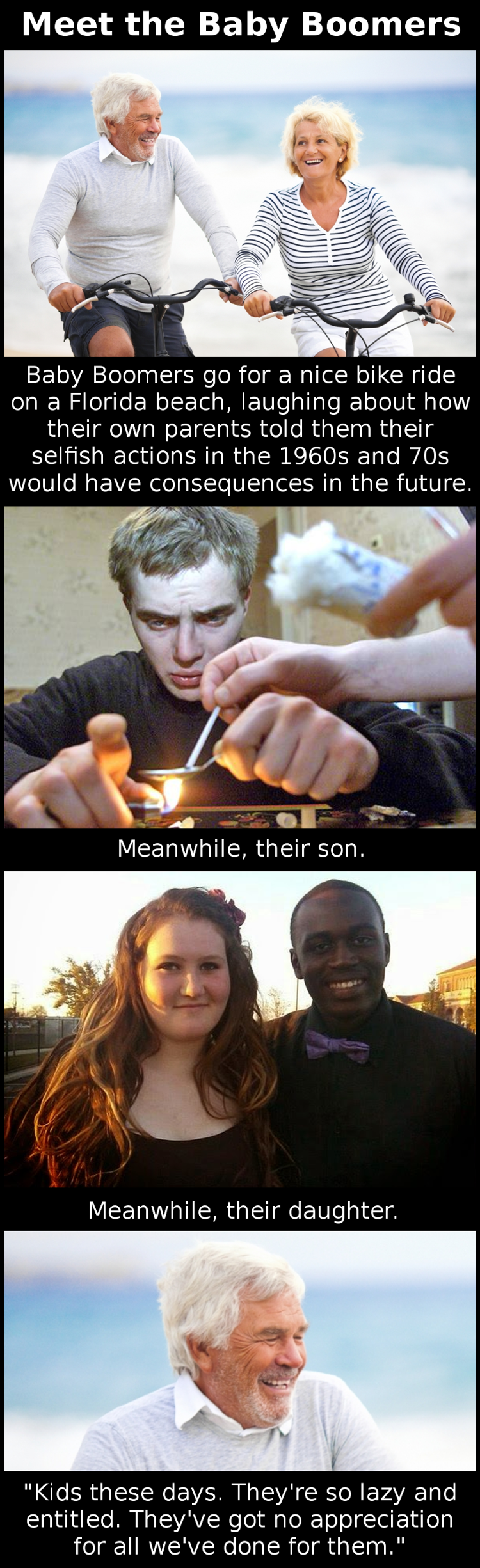 Boomers are pathetic, weak heretics, who do not know of suffering because they’ve led charmed lives, where everything was given to them, and none of their choices had consequences – except on their children.