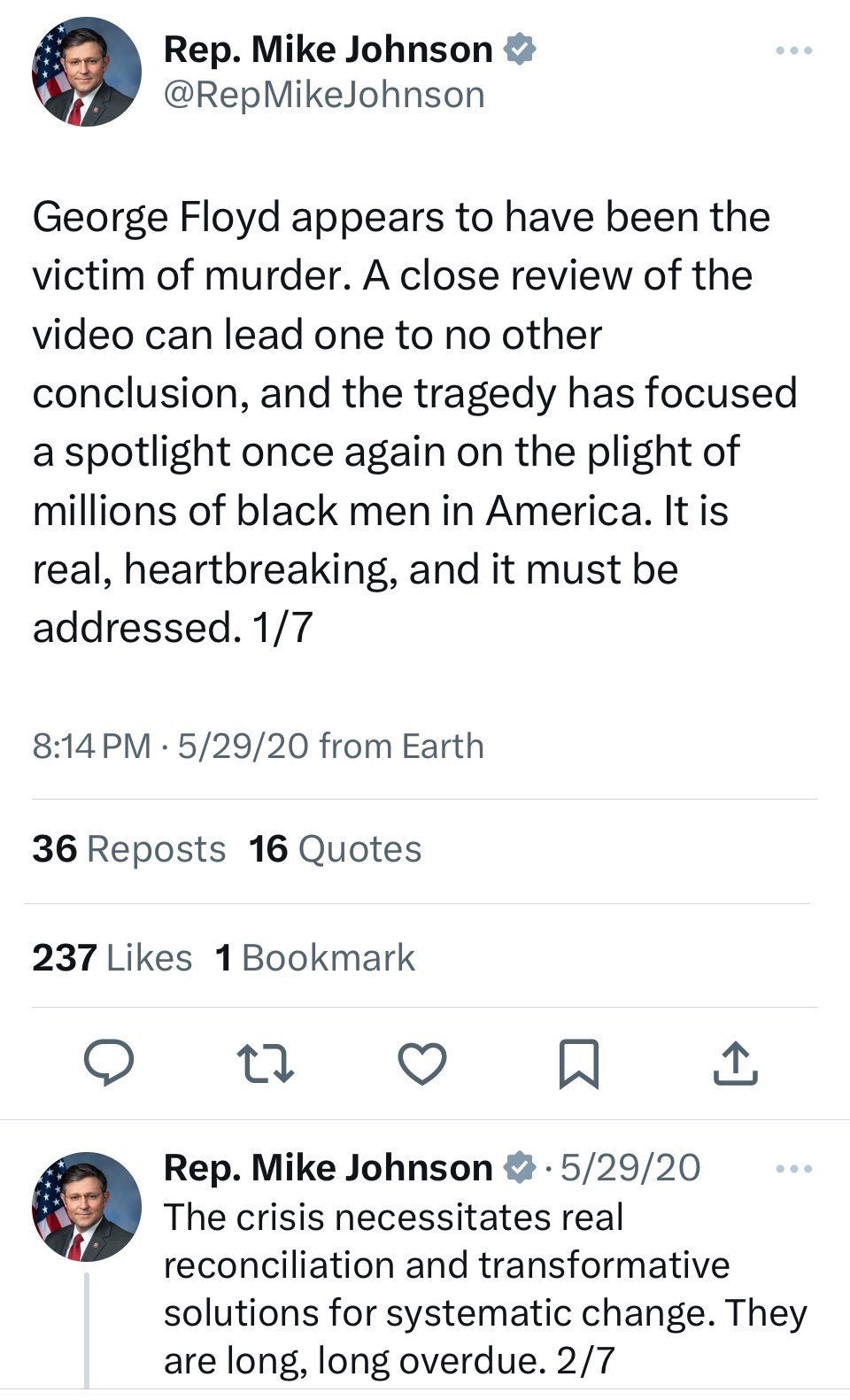 Speaker Johnson was pro Floyd, pro BLM riots and now wants the national guard to intervene in an anti Israeli war movement pic.twitter.com/UbtBntKJHP
