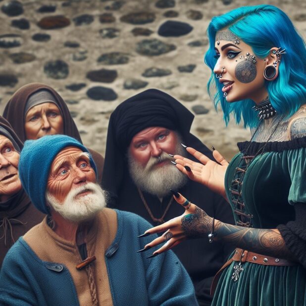 Imagine you had a time machine, like Bill & Ted, and you decided that it would be an excellent adventure to take a gender studies professor, a fat millennial bitch with blue hair and face piercings, back in time to the medieval period and have her explain her various ideological beliefs to farm peasants. So, she would go into the local inn, and gather the farm peasants around the tables, and present to them transgender children, transgender surgeries, homosexual marriage, Black Lives Matter, the Biden open borders immigration policy (monthly $2,200 checks for whoever shows up), and all of the other aspects of the modern social normalcy in current year America.