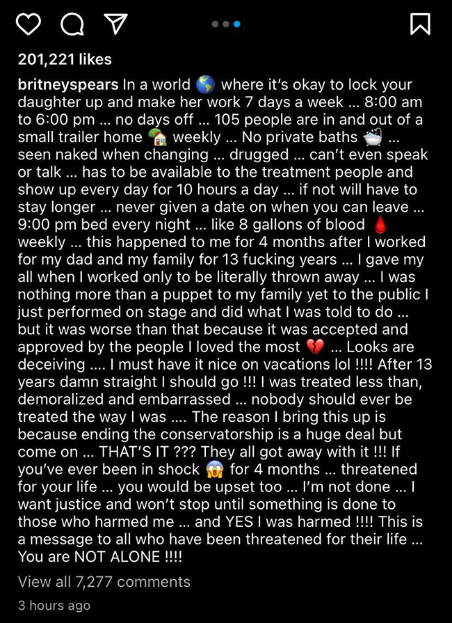 What about Britney? She was held as a slave and made to do forced labor while drugged out of her mind.