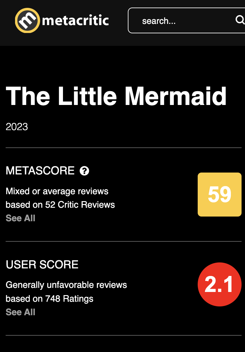 when something is so bad and companies try to protect each other by censoring reality. Little Mermaid’s average is 4.2 but for IMDB it has to be 7 just because they fucking want to, better remove the audience rating and put what they want directly. pic.twitter.com/OWUrPCNTg0
