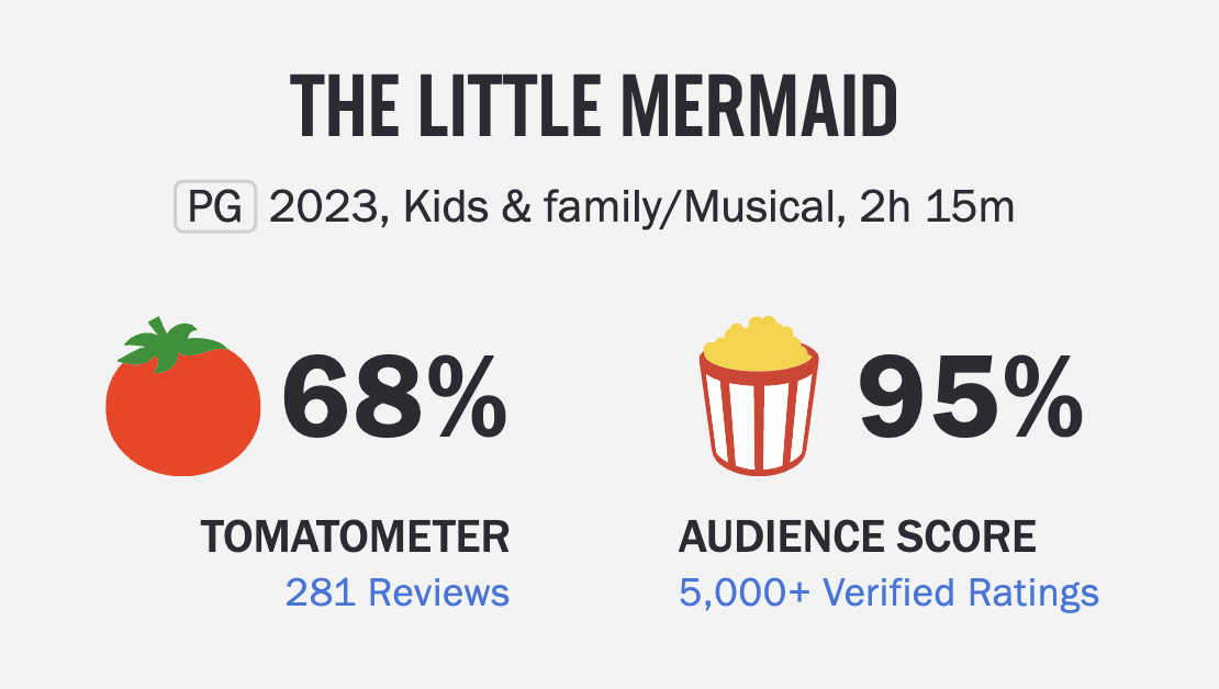 Since its release last week, The Little Mermaid has attracted about 43,000 user ratings on the site, with an average rating of seven out of 10. This broadly aligns with general tone of reviews on the site, which tend to skew slightly more positive than those on sites such as Metacritic, which aggregate professional critics’ verdicts.