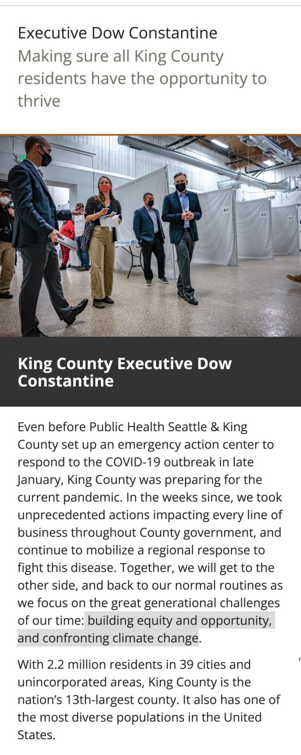 There’s not much available about who is behind that dickhead. However, his bio on the King County website literally says “equity and climate change.”