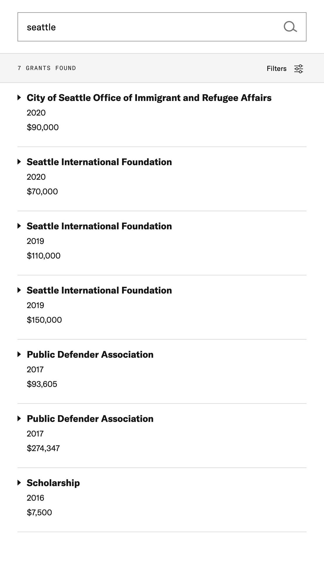 I had assumed that The King County Department of Community and Human Services was likely getting money from George Soros. They probably are, but I couldn’t find it on the Open Society Foundation site. There are shockingly few Seattle-related grants.