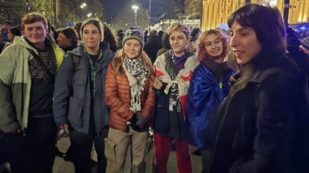 Thunberg explained that she had arrived in the Georgian capital to express solidarity with citizens who had taken to the streets to protect their “fundamental rights.”