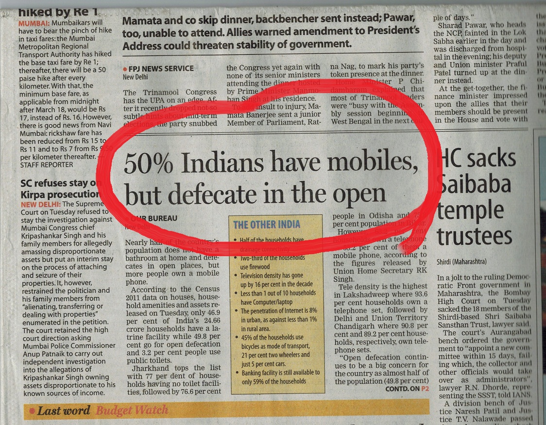India has a problem with people taking dumps in the open which has resulted in a major sanitation issue for the country. Many Indians believe that defecating in the open is preferable to using a toilet. This has obviously created a number of problems.