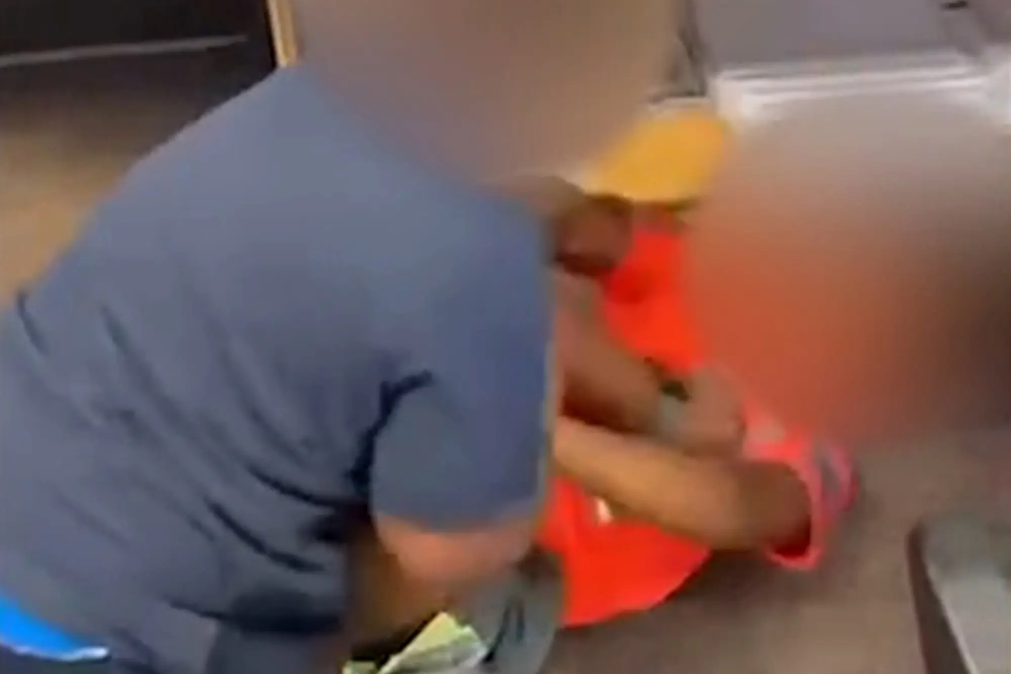 In the horrifying video, a suspected classmate is seen throwing repeated punches at her defenseless son while shouting, “Don’t mess with me.”