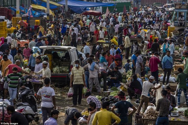 But despite the populace of 1.3billion being told to stay indoors by Prime Minister Narendra Modi, thousands were seen lining up close behind each other to get into bustling markets in Delhi, Kolkota and Mumbai on Thursday.