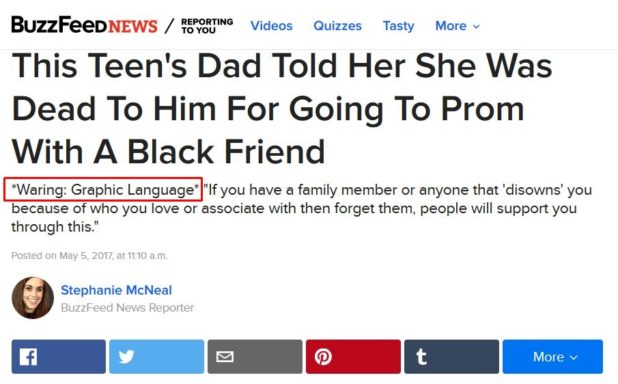 Buzzfeed has published an article about a viral tweet that shows a father disowning his daughter for going to prom with a black guy.