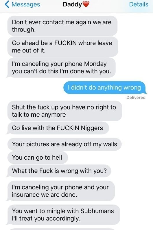 Notice there is a heart icon next to “Daddy” on her phone, and that the Buzzfeed article says nothing about him being a bad person, aside from the racist comments, yet that still wasn’t enough for her to have the basic decency to not ruin his life.
