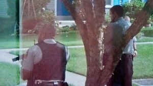 A few minutes later, Officer Rodney Barnes, a trained police negotiator, arrived, and as the four other policemen stood close behind him with weapons drawn, he began trying to coax John Geer out onto the porch.