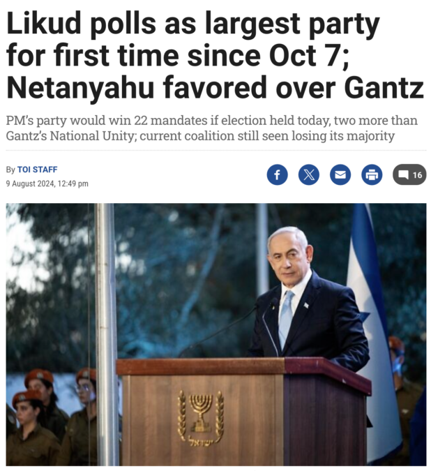 The only other answer is “Bibi is somehow ousted as Prime Minister of Israel,” but the polls are showing he’s doing fine. He’s actually doing better now than he was, because he’s starting a war with Iran.