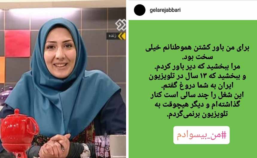As Tehran continues to grapple with the fallout from protests stemming from a cover-up of its accidental downing of a Ukrainian airliner, TV anchor Gelare Jabbari addressed her viewers on an Instagram post that appears to have been deleted.