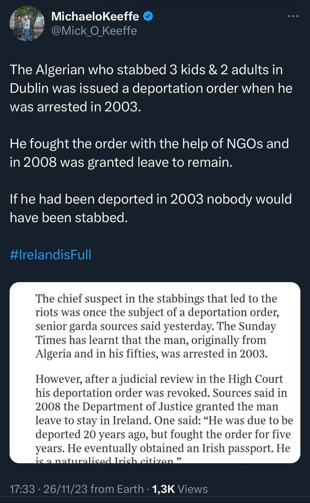 McGregor, who tweeted that Ireland was “at war” and “you reap what you sow” has not been spoken to by gardai at this juncture, and a spokesperson for him did not return a comment before this article went to print.