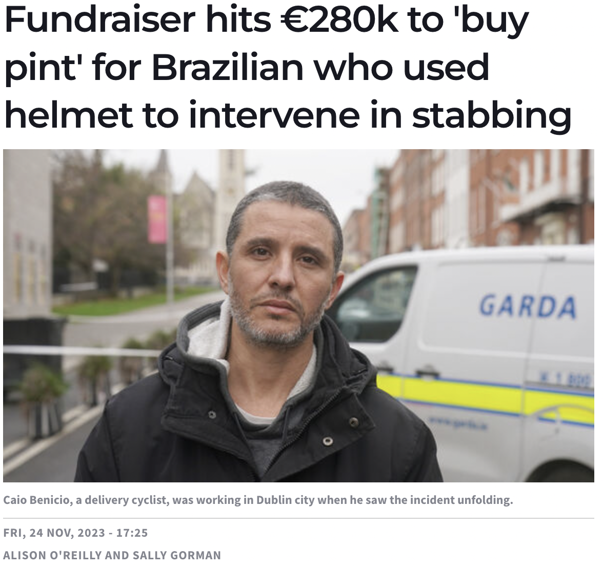 Father-of-two Caio Benicio from Rio de Janeiro moved to Ireland a year ago and intervened when he witnessed what he believed to be a fight on Parnell Street.