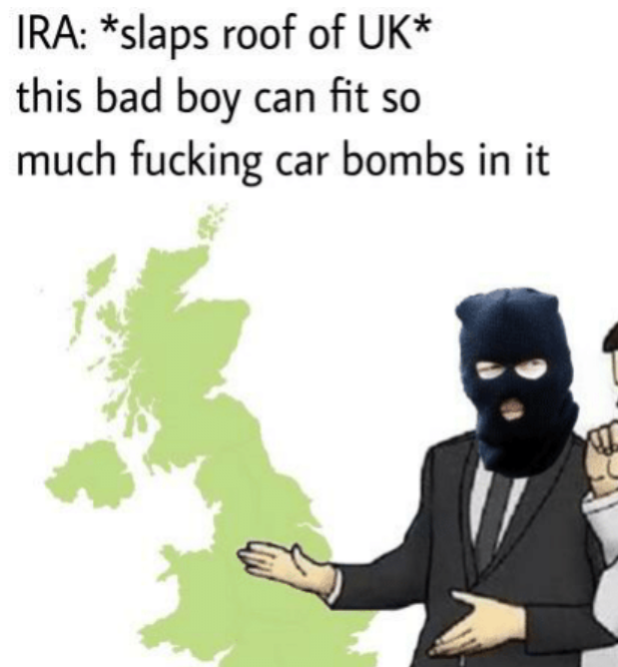 The “Nu-IRA” will be an Antifa-like organization fighting the UK and the Irish government because they’re not being Marxist and accepting enough of immigrants and fags.
