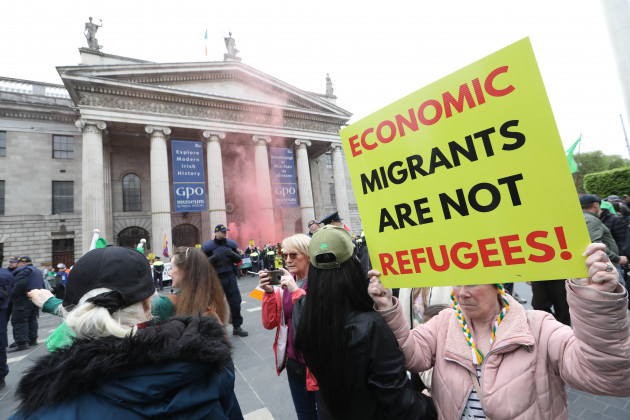 Protestors held signs saying âIreland belongs to the Irishâ, âIrish Civil Rightsâ, âStop the WHO pandemic treatyâ, âMass deportationsâ, âEconomic Migrants are not refugeesâ and âIrish Lives Matterâ, among others.